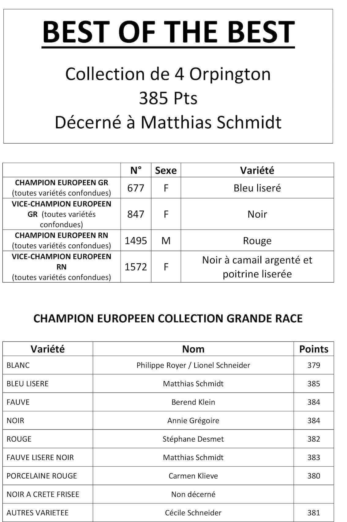 Dans le contexte particulier de l’Influenza aviaire, nous avions peu d’espoirs d’accueillir un grand nombre de sujets à l’occasion du Championnat d’Europe de l’Orpington que nous avions la charge d’organiser. S’ajoutaient à cela les nouvelles réglementations européennes pour les éleveurs étrangers qui étaient tenus de venir avec les documents TRACES afin de pouvoir exposer. Heureusement la persévérance et l’enthousiasme des éleveurs ont fait que nous avons fini avec plus de 770 sujets Orpingtons exposés et une petite trentaine d’éleveurs étrangers !