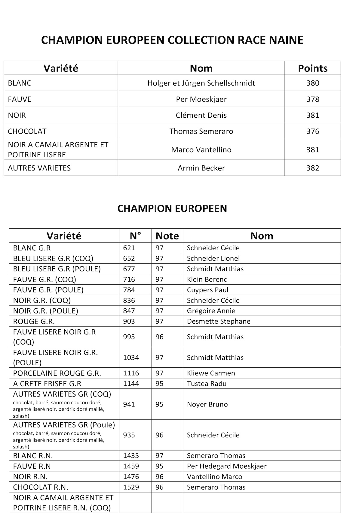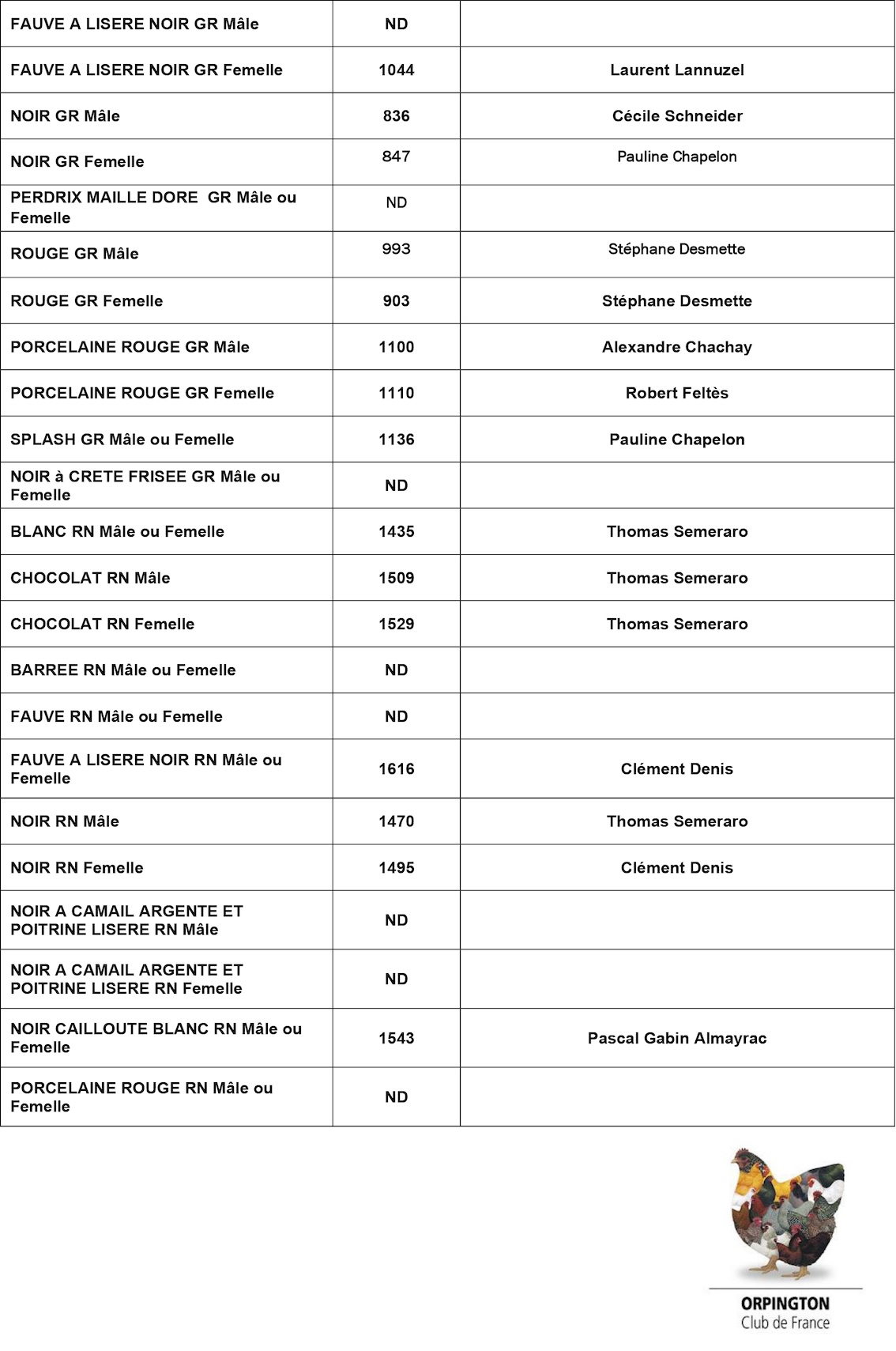 Au niveau des animaux présentés, il y avait de très bons sujets en GR comme en RN avec pour certaines variétés, un très grand nombre de sujets présentés comme la Fauve liseré noir GR avec 126 sujets, la Noire GR avec plus de 80 sujets. Et puis comme bien souvent, des sujets qui n’avaient rien à faire là car trop jeunes… espérons juste que les éleveurs de ces animaux retiennent la leçon pour la prochaine fois.