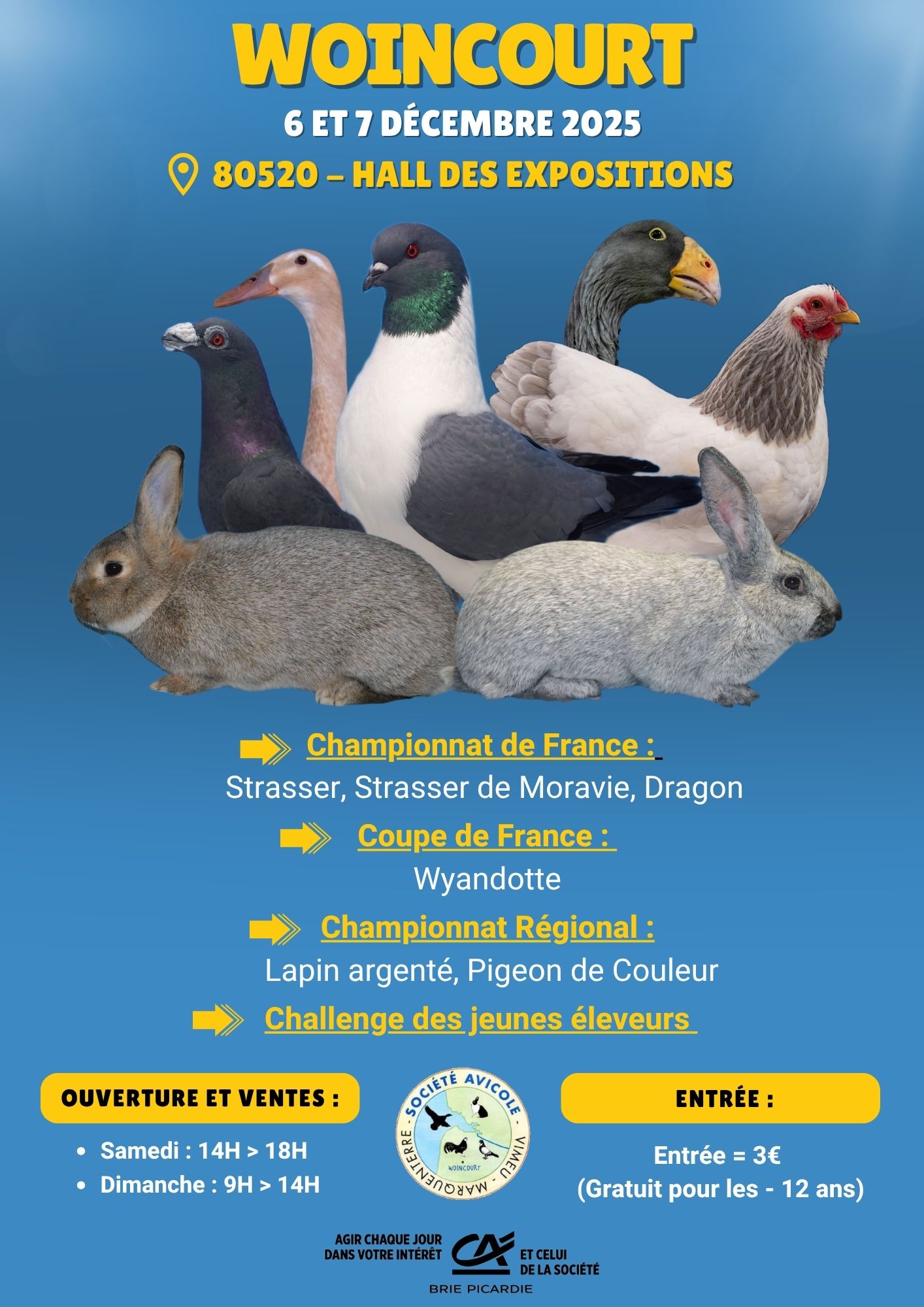 Woincourt Woincourt, FrancePatronage FFV Organisation : Société Avicole Vimeu Marqueterie Contact : Aymeric Amourette Adresse : 13 rue d'en haut Téléphone : 0615640167 Email : savm80520@hotmail.fr Site Web : https://www.facebook.com/groups/327434588111305 Description : Exposition nationale organisée par la Société Avicole Vimeu Marquenterre. 🇫🇷 Championnat de France du Strasser, Strasser de Moravie et Dragon. Lire la suite